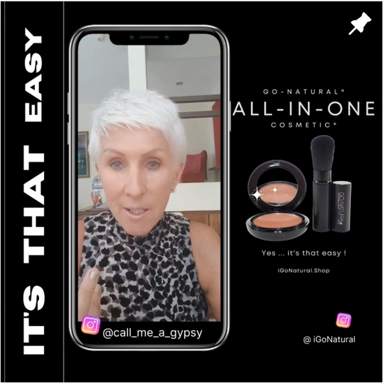 GO NATURAL® The ALL-IN-ONE Cosmetic®, created by Licensed Cosmetologist Michele Kish and founder of GO NATURAL INC.,... a professional-grade, no-shades, multi-functioning pressed powder designed to simplify beauty routines. Launched in 1999, this multi-functioning, single-shade product adapts to all skin tones, types, and ages, eliminating the need for shade selection. The formula works with each individuals own unique pigments and bone structure to replace eight cosmetics in one: blush, foundation, eyeshadow, lip color, concealer, highlighter, contour, and brow color, with no technique needed, and results in seconds.